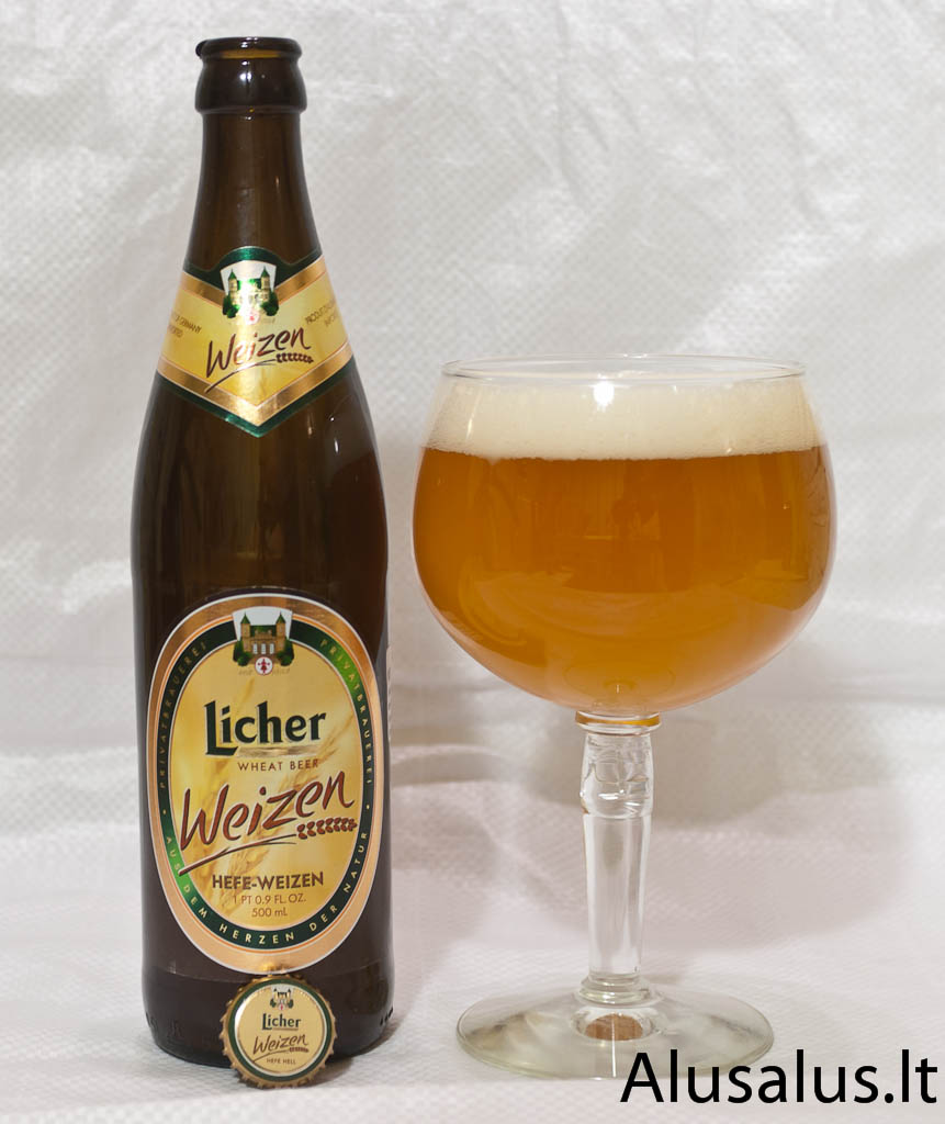 Pirmasis – Vokietijos „Licher“ bravoro alus „Weizen“, priklausantis „hefe-weizen“ stiliui. Drumstas gintaro spalvos alus su netvaria, bet aromatinga puta. Kitaip tariant – alaus aromatas juntamas dar nesusėdus putai. Alus pilnas vaisinių – citrusinių aromatų. Juntami bananai, persikai, aštrių prieskonių natos.
